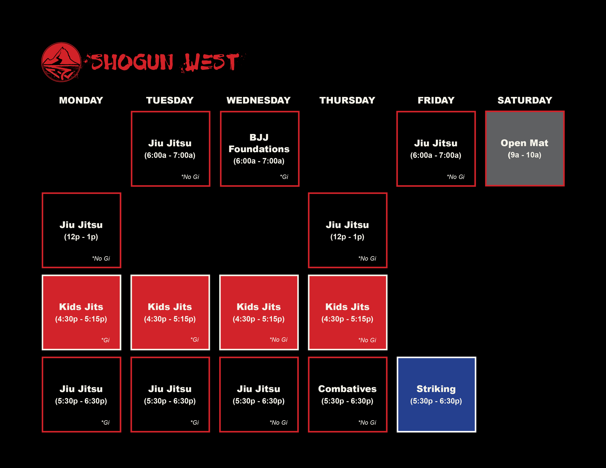 PREP: No Gi - Rash Guard / Leg Guards / Training Shorts / Mouthguard (strongly encouraged)